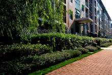 宅间花园——园林通过步行主轴,延伸出不同主题的宅间花园,花团锦簇,绿草茵茵。小路边散落的石块,原来是景观师苦心安排的石凳,看似不经意的作品却蕴藏了景观师对自然的领悟。