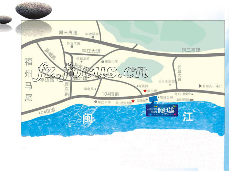 海西假日湾接壤福州东区,沿线机场高速路2期工程倍受瞩目,该工程总投资40多亿元,起自马尾,止于新店,总长近26公里,计划于2009年建成.届时亭工到福州中心城区的时间,将由现有的40分钟缩短到15分钟左右.加上假日湾紧靠宽敞的104国道,交通优势得天独厚,四方道路通达,出行便捷.