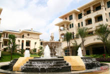 东江滨山水别墅 1400 亩国际休闲社区。 1400 亩浩瀚大盘,在整体的规划和统一的布局下,全面导入目前国际上较先进的“newtown” 开发模式,在东江滨规模打造西班牙风情魅力之城;营建集独栋别墅、联排别墅 townhouse 、多层与高层为一体的超大国际休闲度假社区。自然中生长出来的贵族生活空间,建筑与山水人文和谐交融。超大社区水景园林,结合国际经典私家园林的造园理念,设计出独特的自然空间:大型人工湖泊、万千种南亚热带植物、生动的绿地景观,形成特色水系景观园林。良好的社区氛围,处处渗透出溶厚的山水人文精神。在人居住环境上,生活、建筑与山水文化成为有机一体。