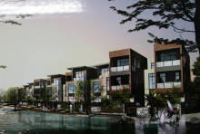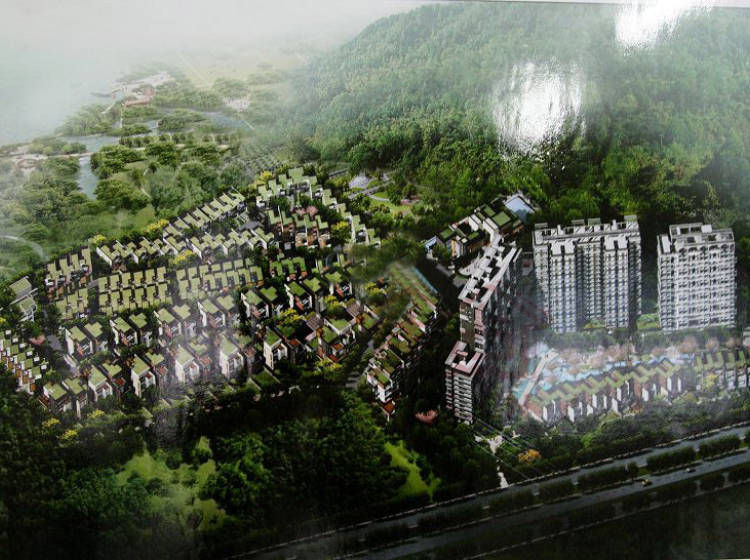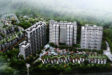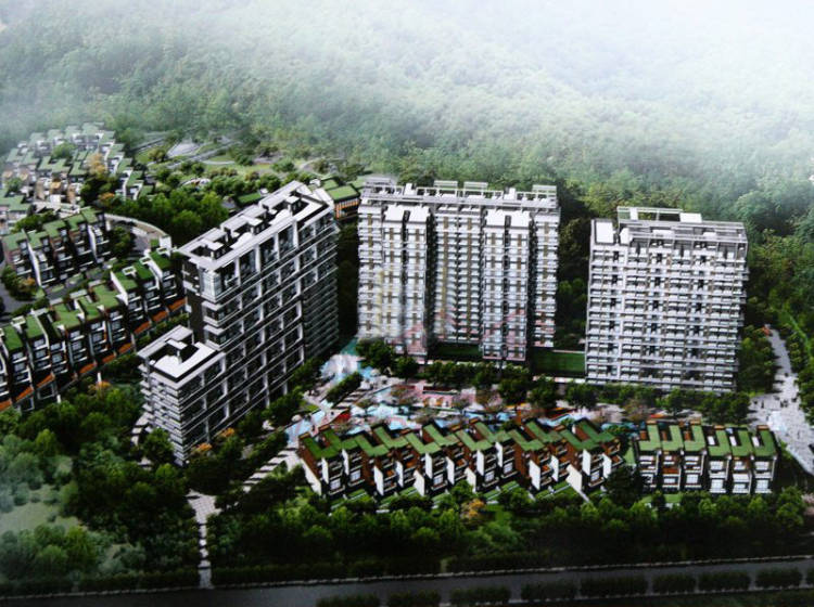该项目位于国宾馆旁,群山环抱,资源优越,风景至上;东临鲤鱼洲国宾馆,南瞰新东阳高尔夫球场;北望万米宽屏闽江;占地130亩(含周边绿化用地),开发面积13万多平方米,建成后将成为福州少有高档山地别墅住宅社区。 本项目用地共分二个地块,地块一约70亩,为高差较大的山地地形,黄海高程约20至75M;地块二约30亩,地形较为帄坦,高程约17M。项目总用地面积66666.7平方米,总建筑面积128775.4平方米,其中计容面积86680平方米;建筑密度27.7%,绿地率37%,用地性质为居住用地;地块一建设低层住宅,地块二建设二类高层及低层住宅;共设469个机动车位。