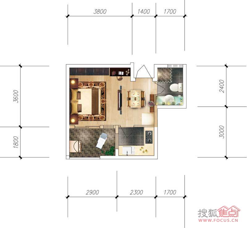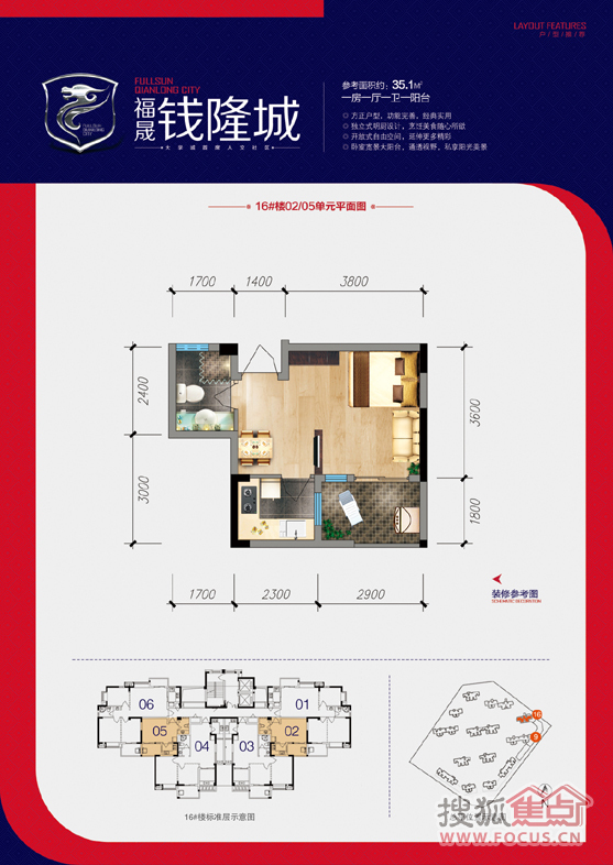 1室1厅1卫-福晟钱隆城 35.10㎡ 1房1厅1卫1阳台