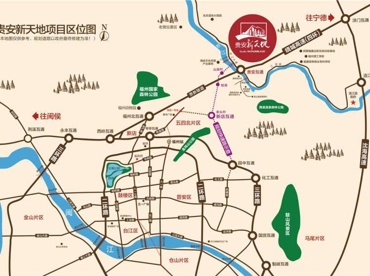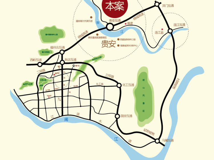 贵安新天地紧邻福州绕城高速,距福州市区、连江县城等仅20分钟车程,至长乐国际机场约40分钟,交通方便快捷。