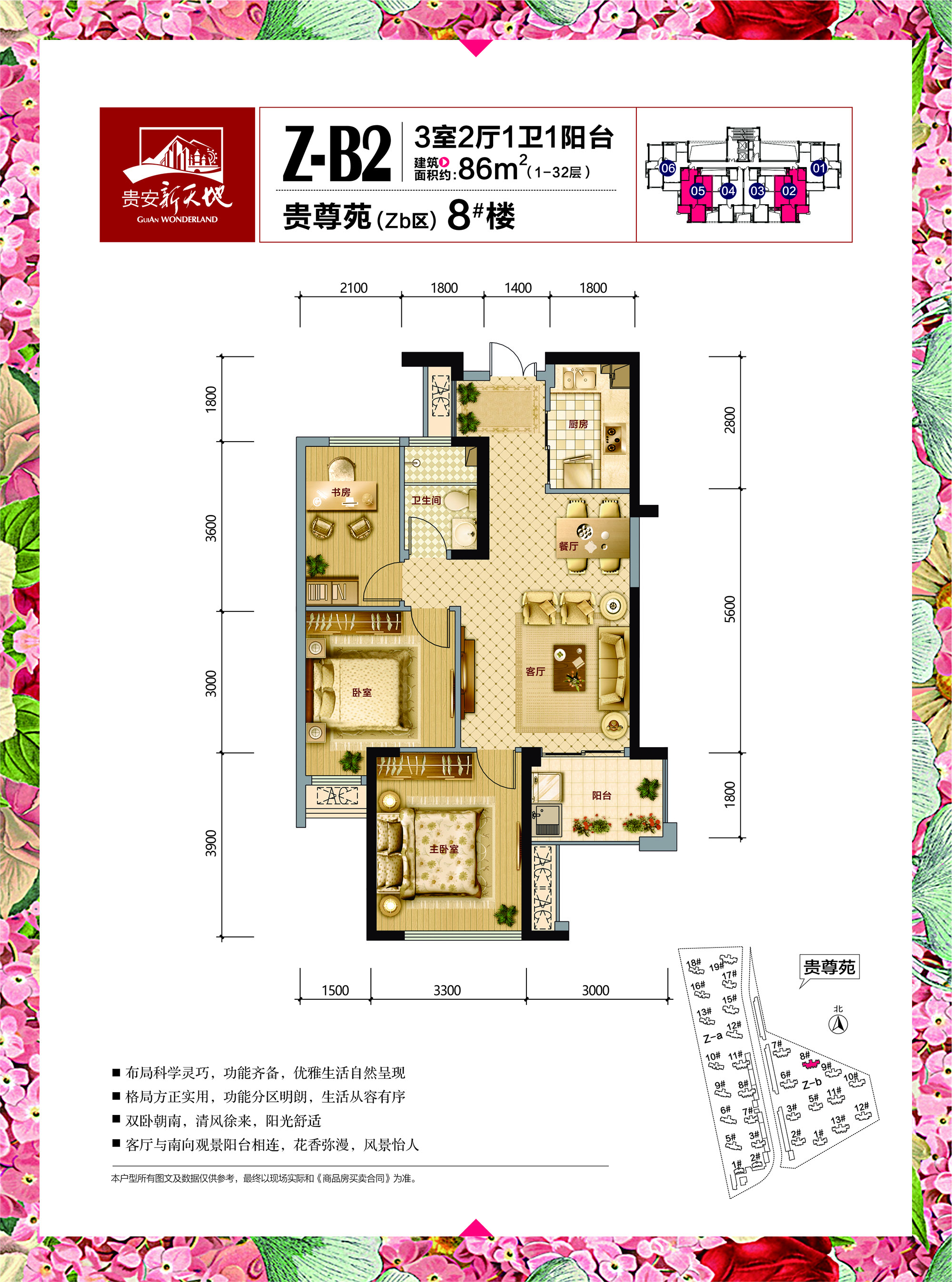 3室2厅1卫-贵尊苑8#楼户型86平米