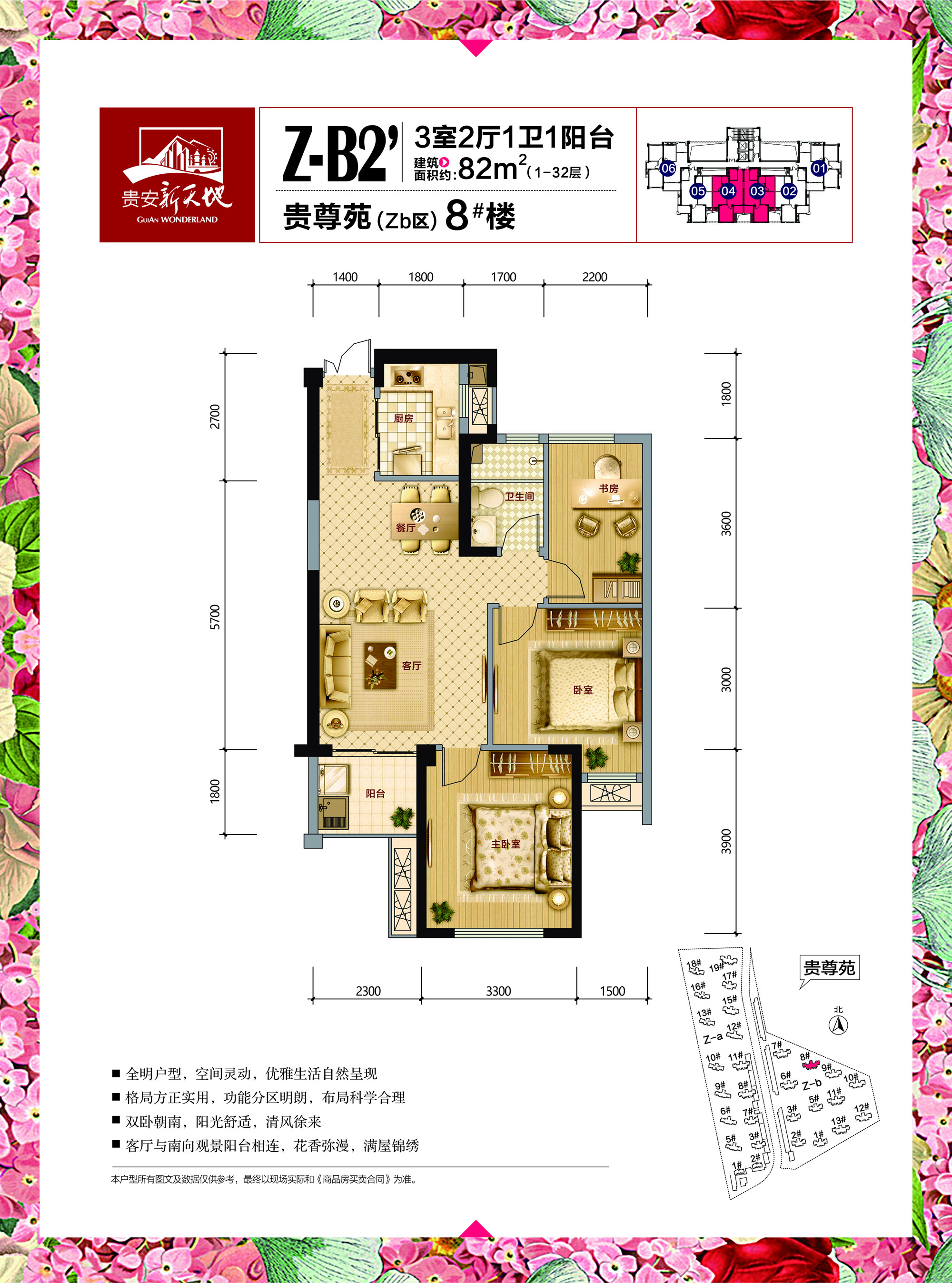 3室2厅1卫-贵尊苑8#楼户型82平米