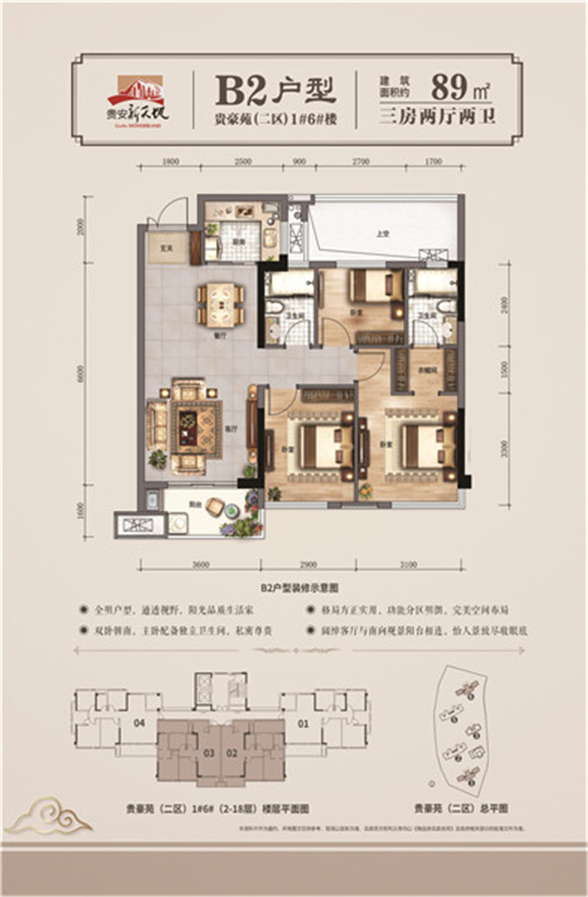 3室2厅2卫-89㎡