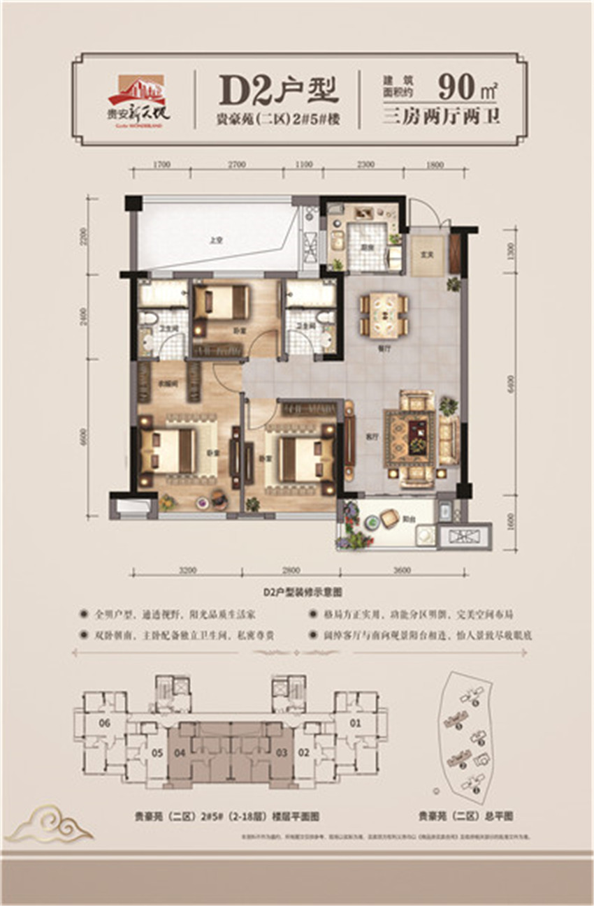3室2厅2卫-90㎡