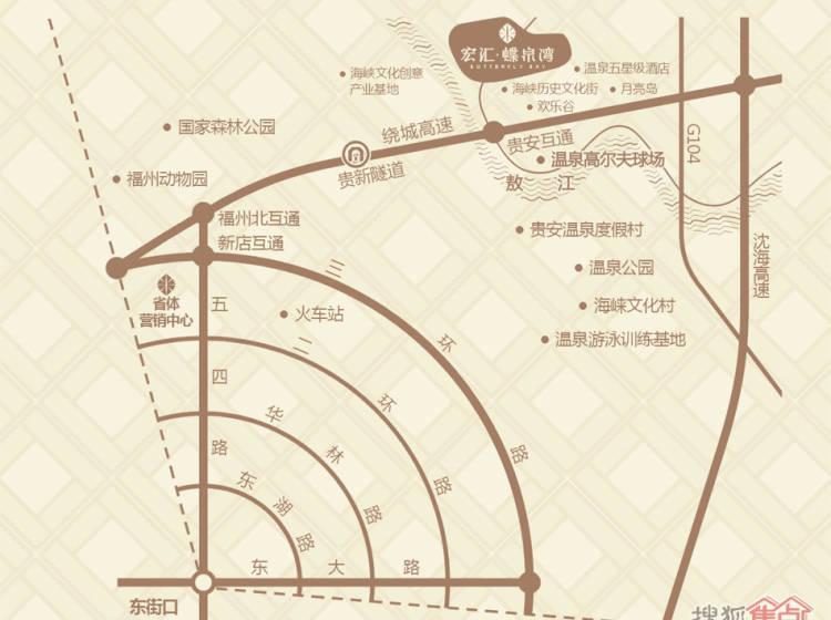 宏汇蝶泉湾,是福建宏汇置业有限公司重金打造的排名前列项目。项目位于福州贵安,敖江北岸。隶属于贵安温泉板块。周边配套设施齐全,集温泉旅游、高端论、商务洽谈、休闲娱乐等为一体。仅一江之隔就是海峡文化创意产业基地,也是海西发展的重点项目。这些将给贵安板块打造温泉度假区带来最坚实的支持,同时也将推动该区域的发展,提升板块价值。