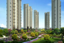 景观设计上,采用两主轴四次轴多节点的规划模式,结合山河自然景观,因地制宜,打造自然化的园景,西区通过加大东西山墙间距,以及主楼错落的布置方式,着力挖掘山墙间的景观空间,形成南北向带型空间;东区则形成南北向数十米,东西向数百米的大面积景观绿地,形成既有均好性特征,又有集中特点的大尺度景观空间。社区中心景观—组团绿化—架空绿化—入户私家花园或私家阳台构成了景观渗透序列,使户户有景,窗窗有景。使用架空层绿化、花园绿化、屋顶绿化,植草砖绿化停车等手法丰富社区绿化层次,使社区绿意盎然。