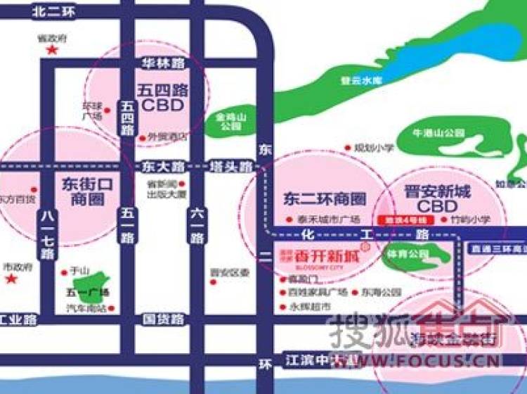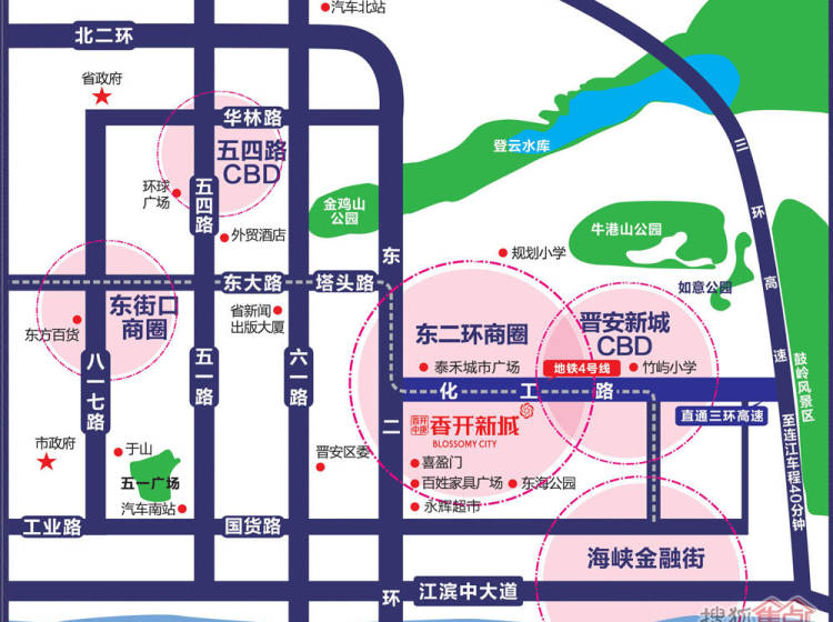 东临千年鼓山山脉,西面金鸡山公园,南望金融街