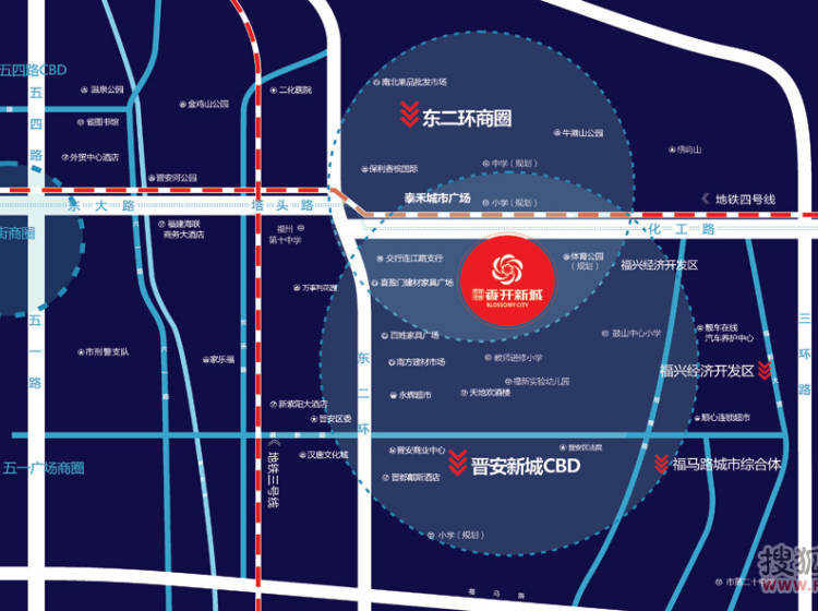 东二环泰禾广场、永辉超市、喜盈门家具广场、百姓家具、二化医院