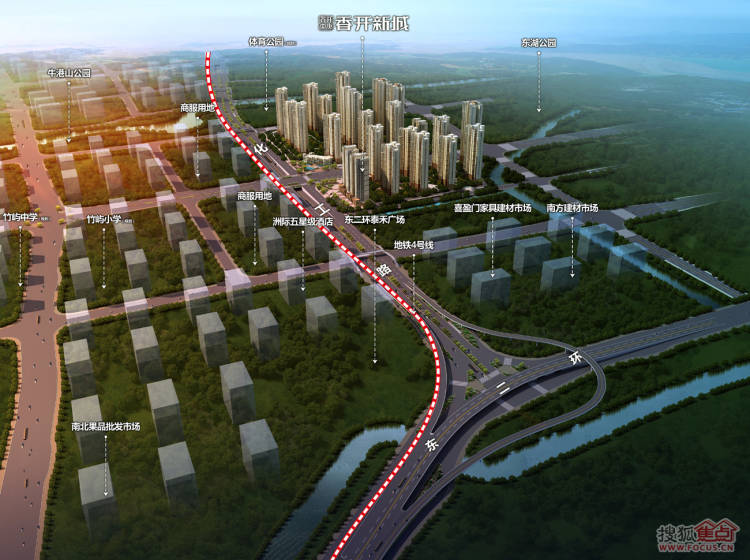 香开新城地处福州市晋安区连江路以东、化工路以南,项目总用地180亩,总建筑面积44万平方米,容积率≤2.8,为福州市中心难得的纯住宅生态大盘。项目分为东西两大区进行开发,整体共规划24幢18-39层住宅,住宅底层全部架空,可享受较大限度的景观资源及通透感,使住宅与环境融为统一整体。