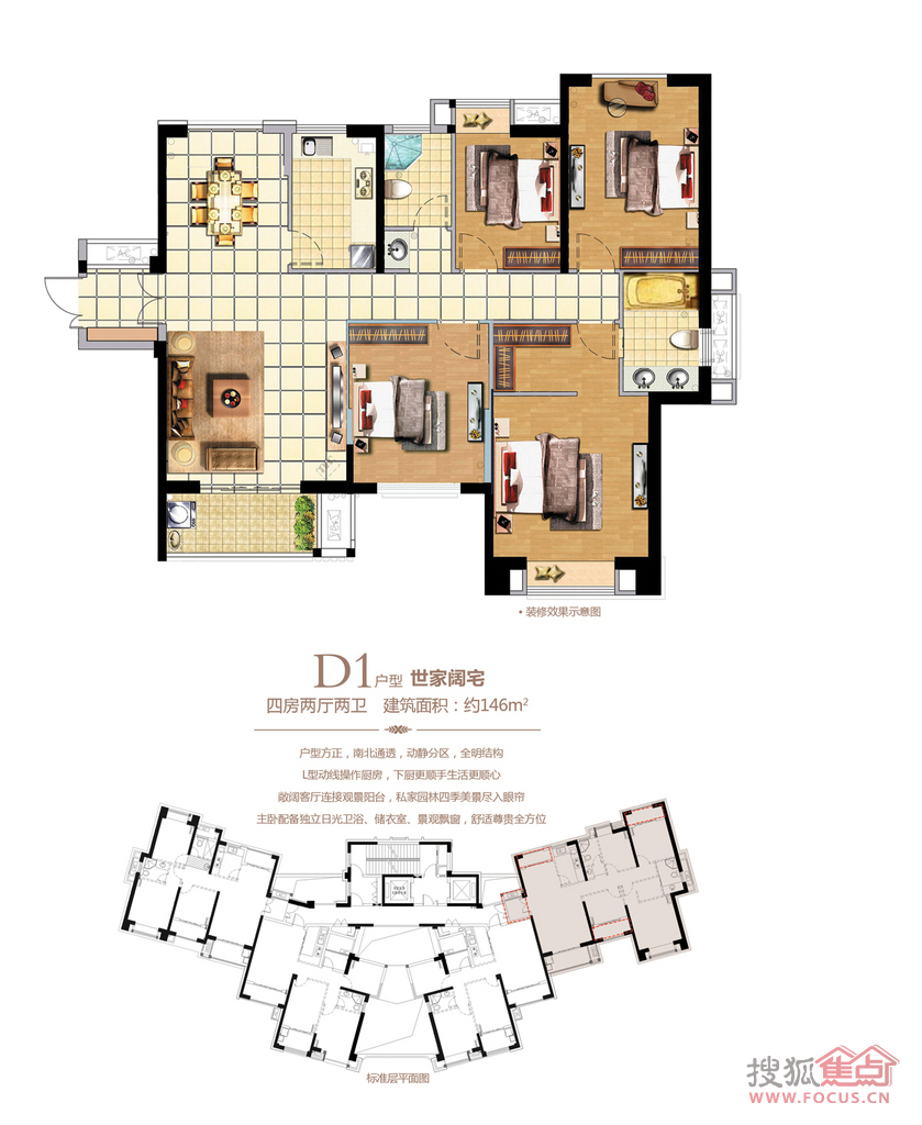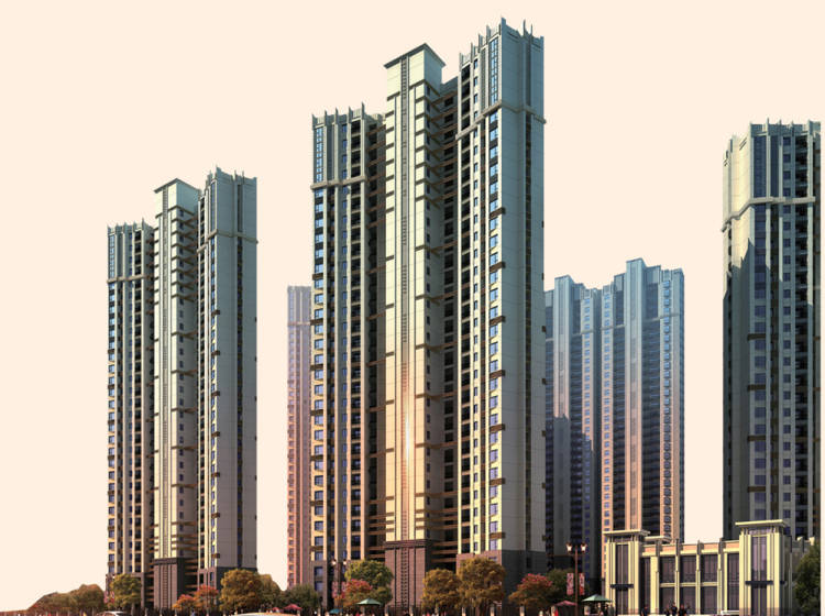 建筑设计上,选用带装饰性的现代风格。立面采用简洁高雅的纯净色调及丰富的形体变化,强化立面竖向线条,强调高层塔楼的竖向体量感及挺拔感;建筑底部及裙楼部分则体现丰富细节和材料质感。整体体现明快大方的现代人居环境的气质,同时又注重整体的组合形象规划。单体形象明快简洁,景观视线结合观景阳台、落地飘窗,让视野与社区大面积绿地及水体相交融。