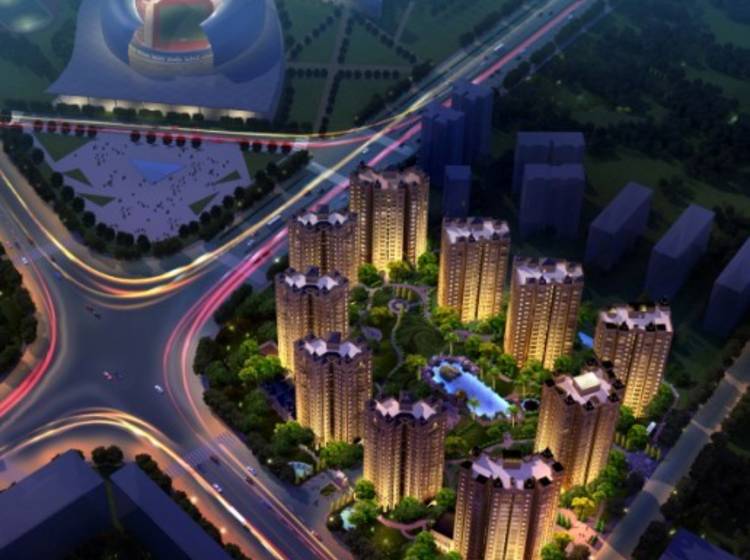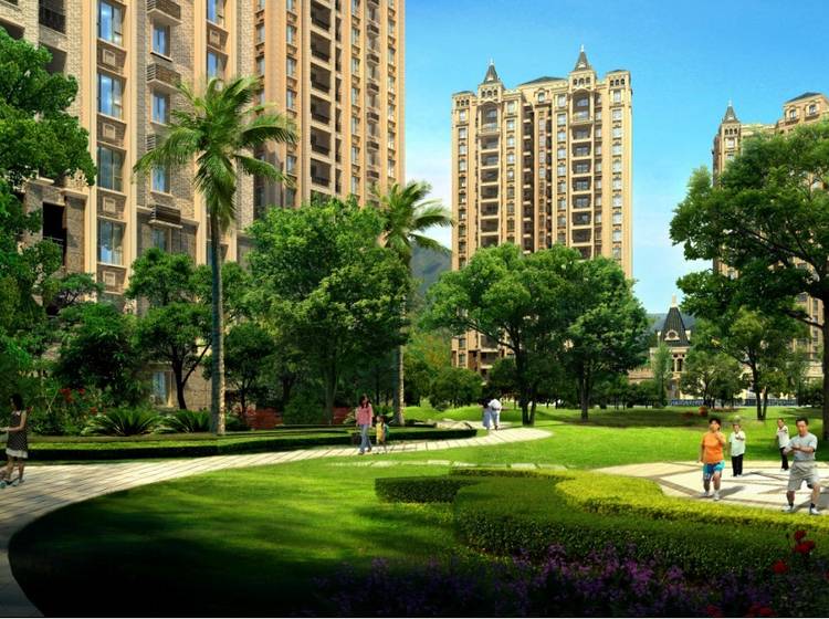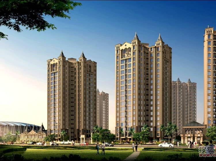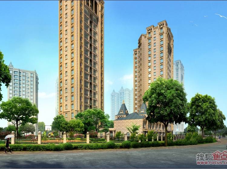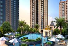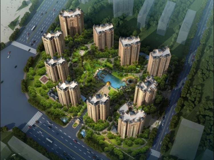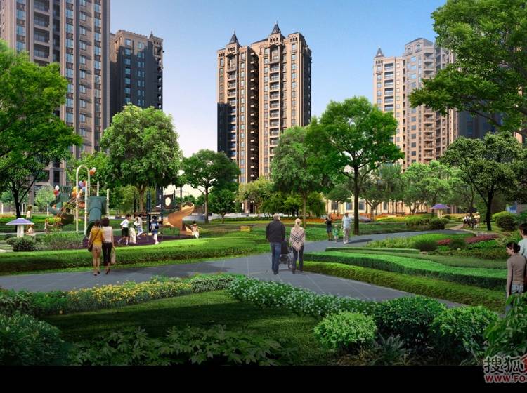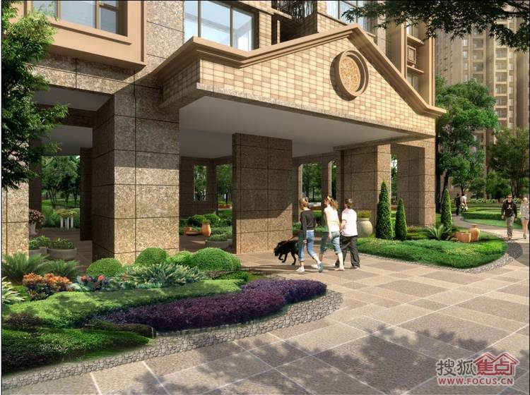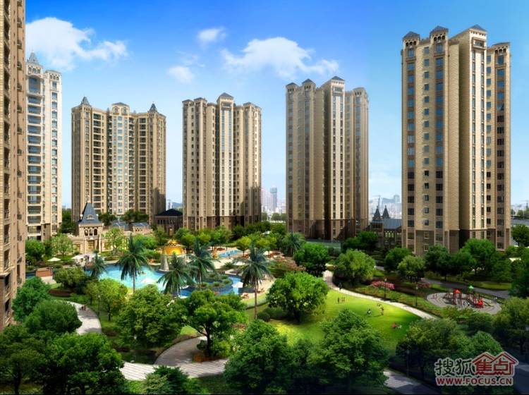 项目采用人车分流设计,中央合围式园林设计,多层立体绿化,拥有露天泳池会所。