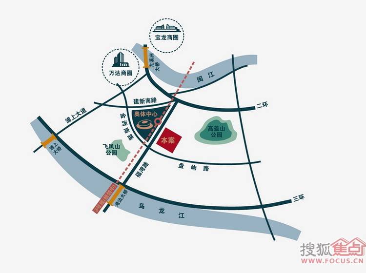 市政配套:海峡奥林匹克体育中心、高盖山公园、飞凤山奥体公园。