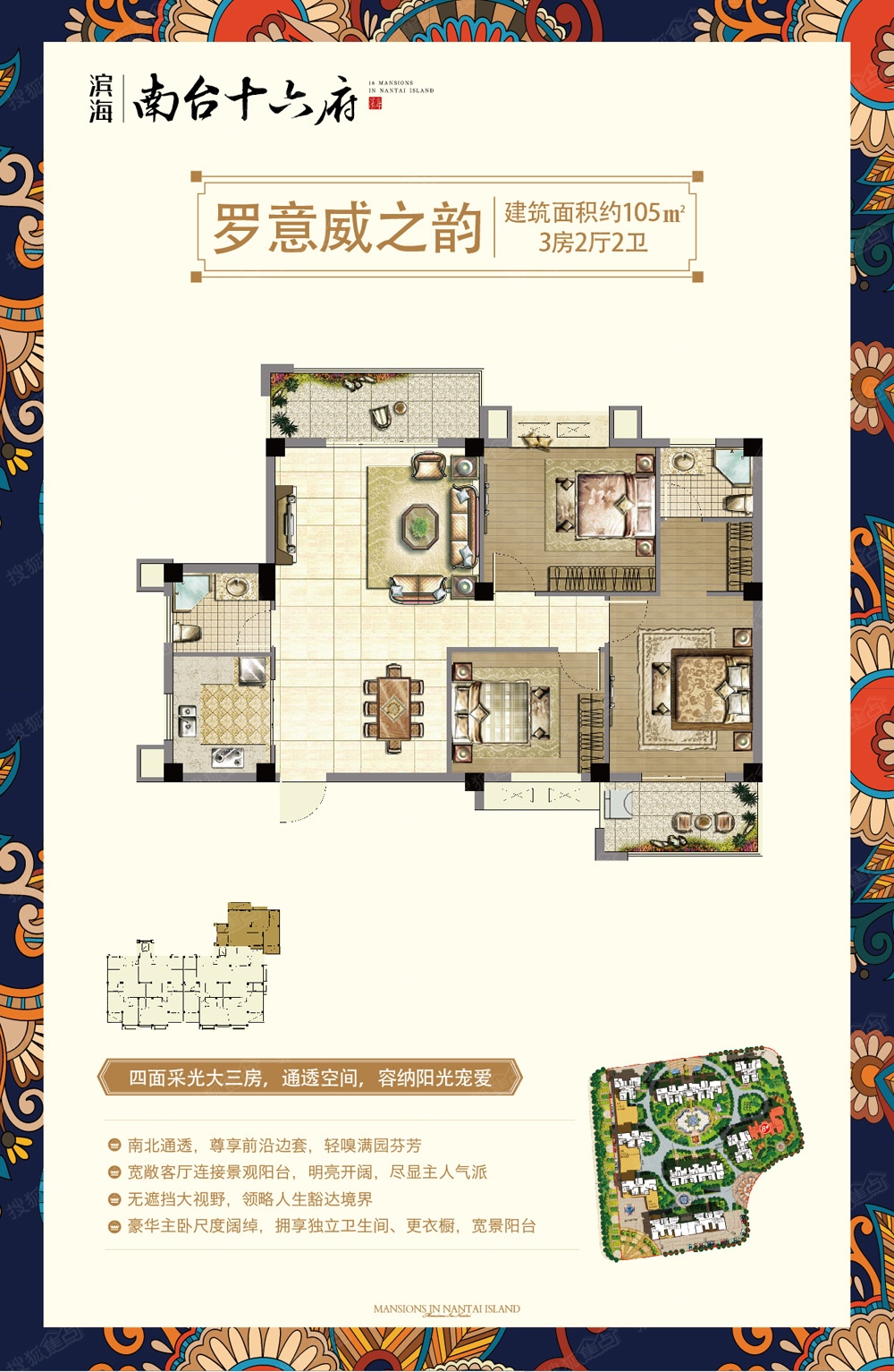 3室2厅2卫-南台十六府105㎡户型图