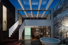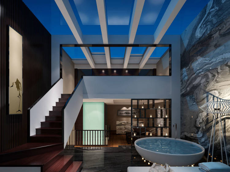 酒店顶层和底层为中旅旗下准五星温泉度假酒店,配套70余间客房,另配套有spa、特色餐饮、会议等公共设施。