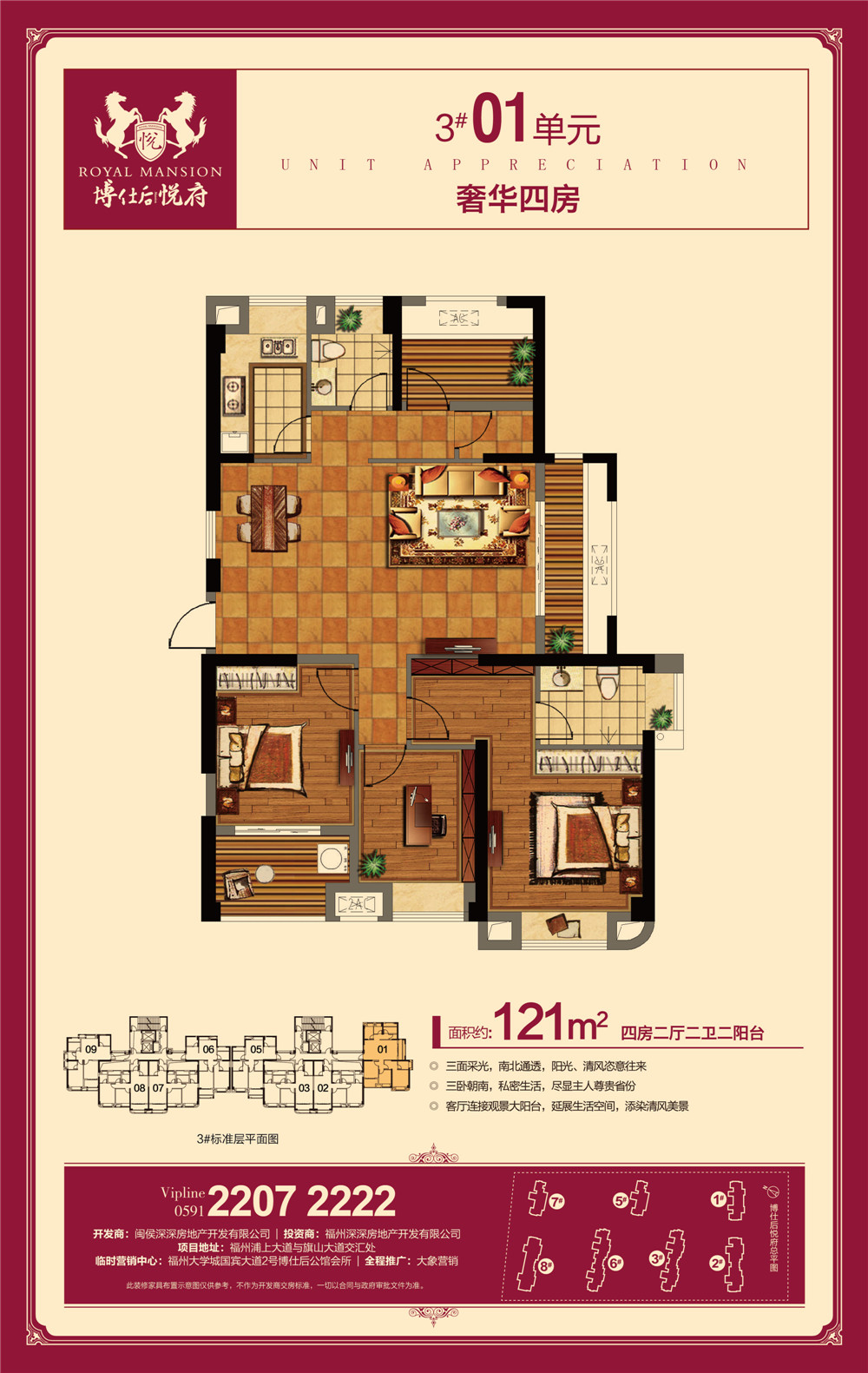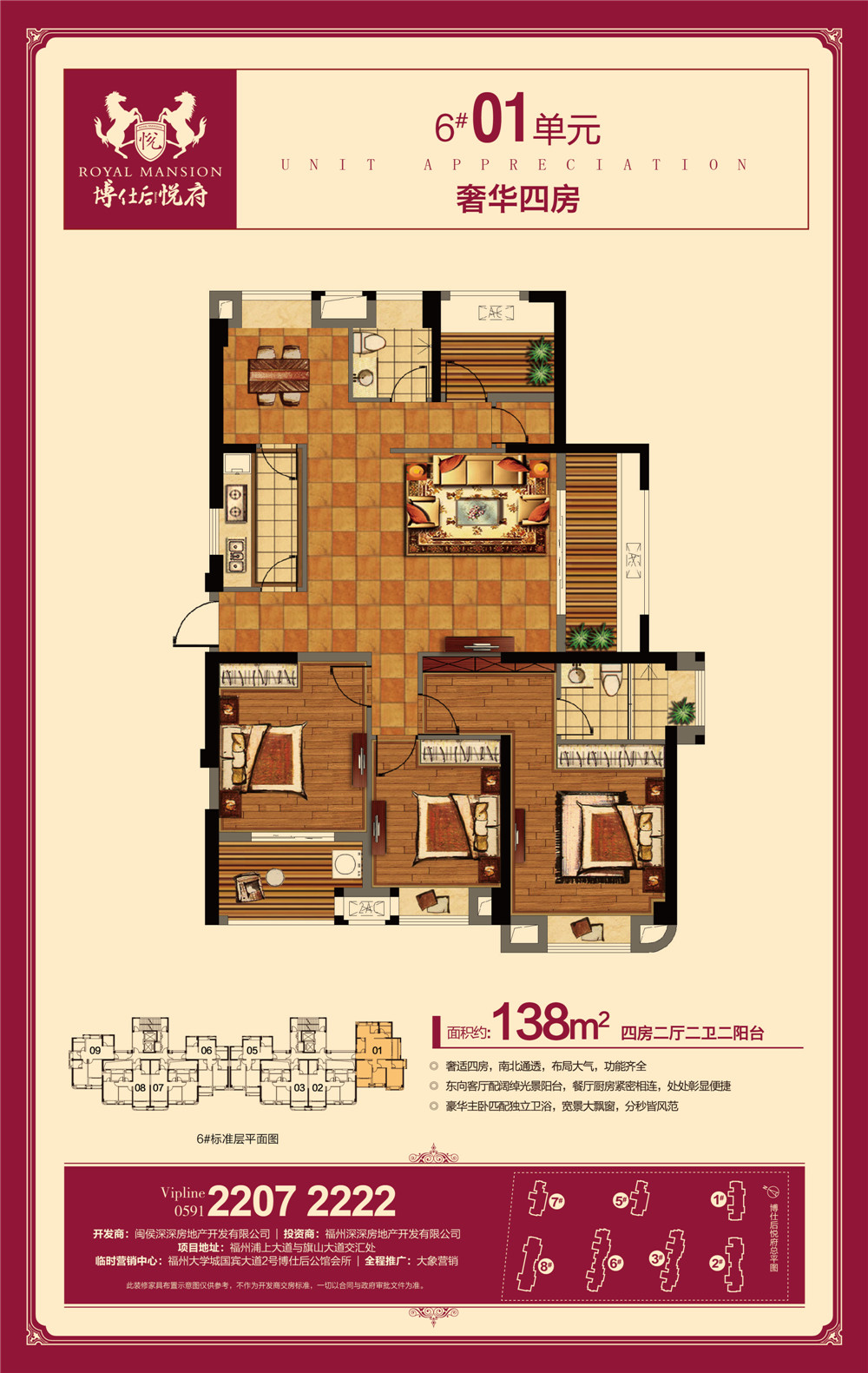 4室2厅2卫-博仕后悦府F1户型图6#01单元