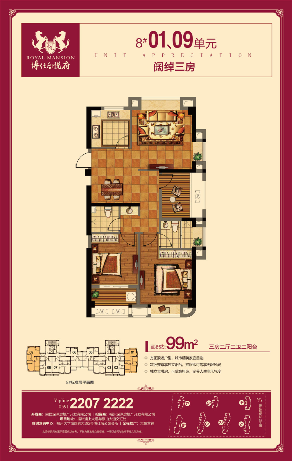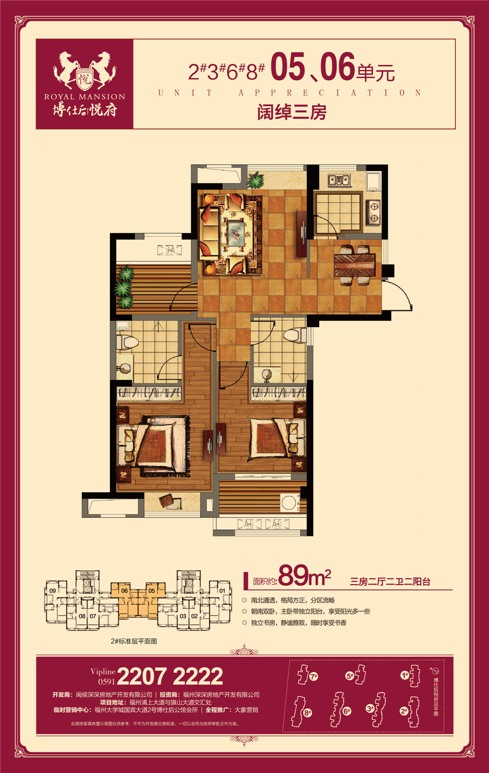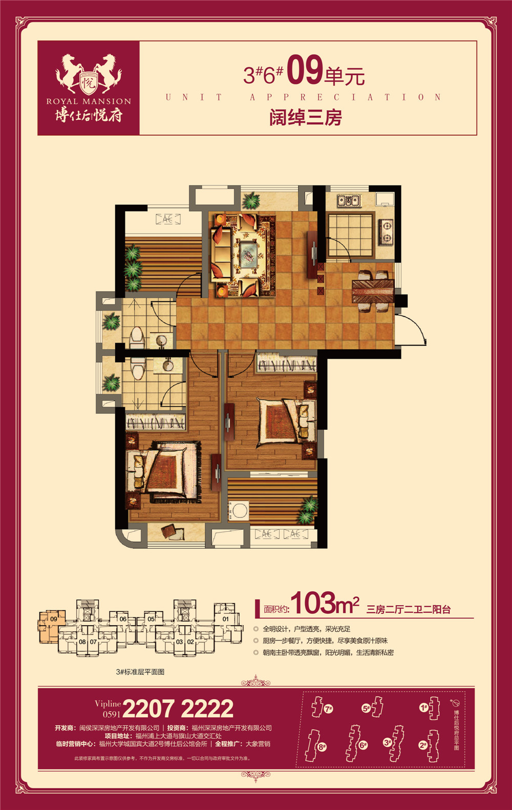 3室2厅2卫-博仕后悦府B3户型图3#、6#09单元