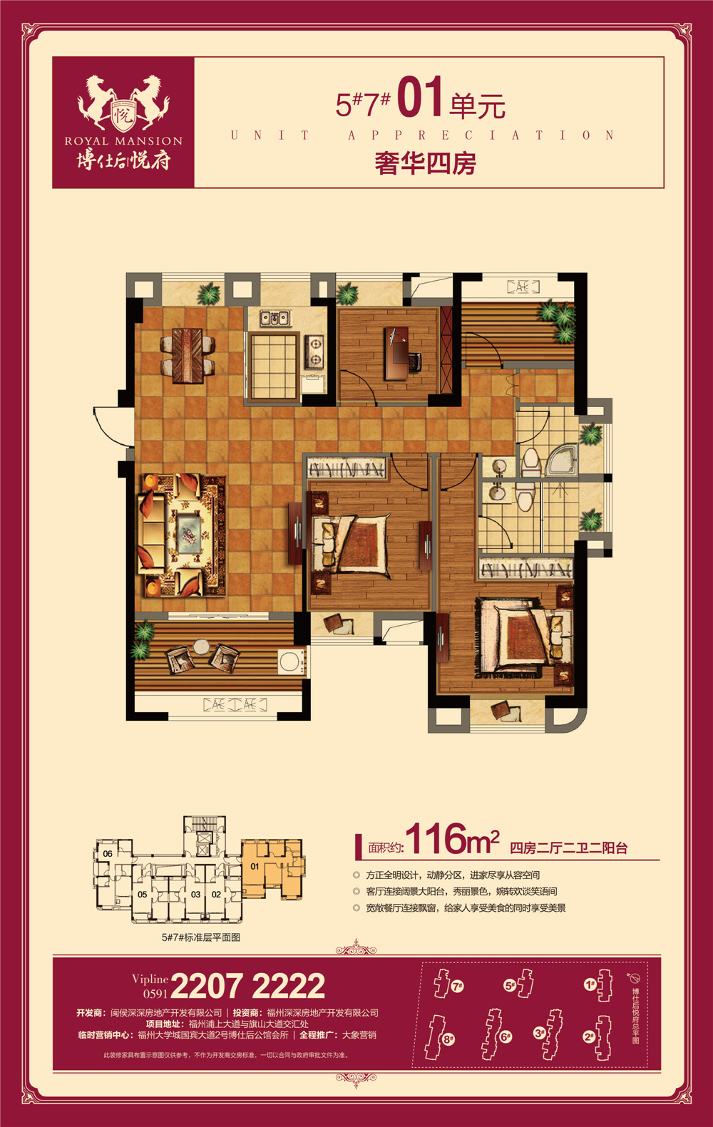 4室2厅2卫-博仕后悦府D1户型图5#、7#01单元