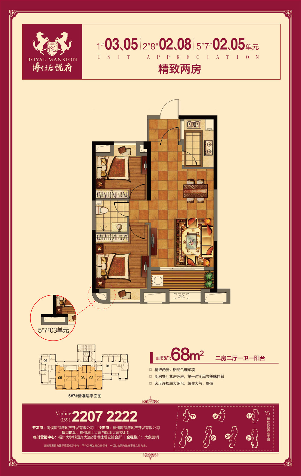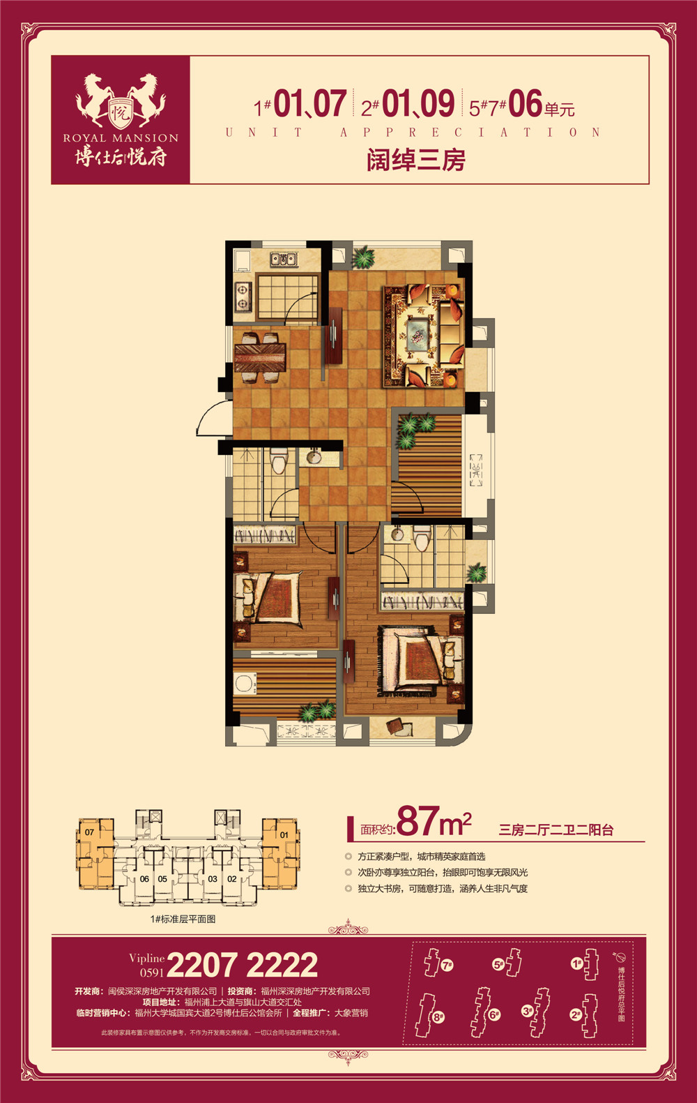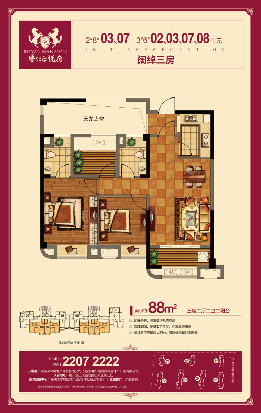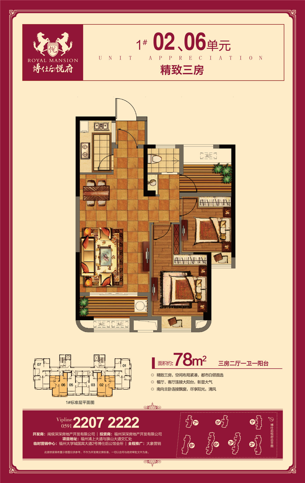 3室2厅1卫-博仕后悦府E1户型图1#02、06单元