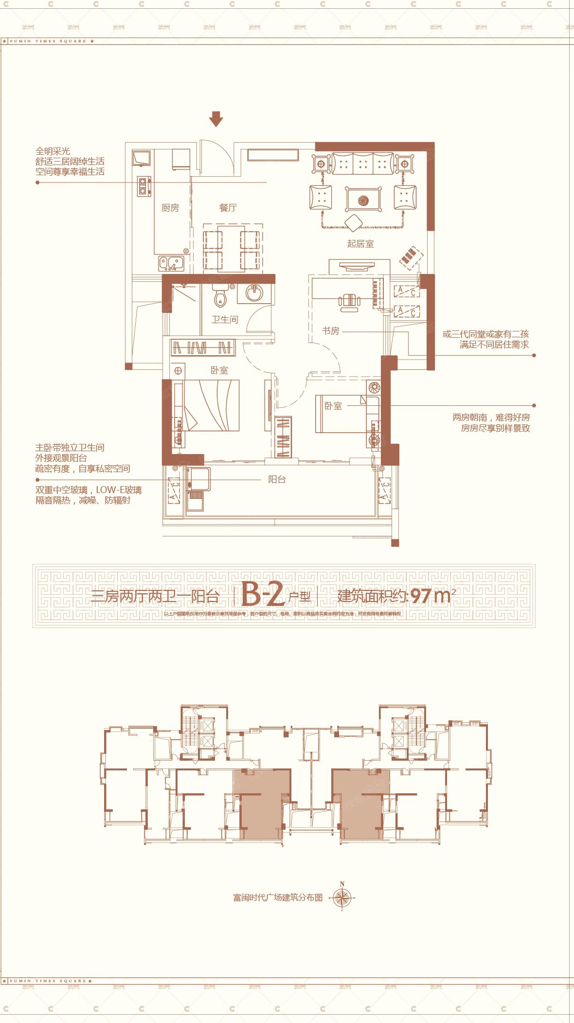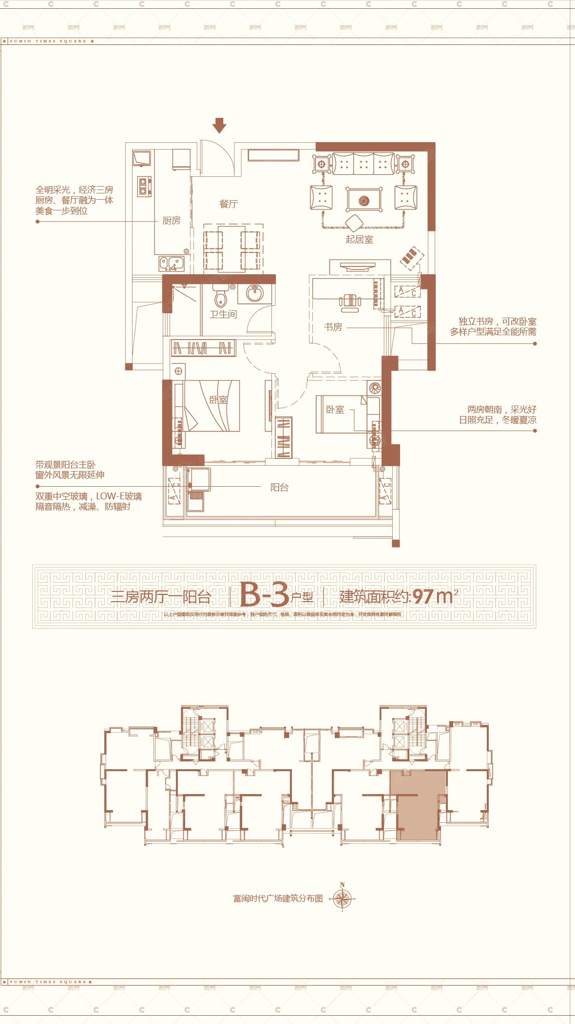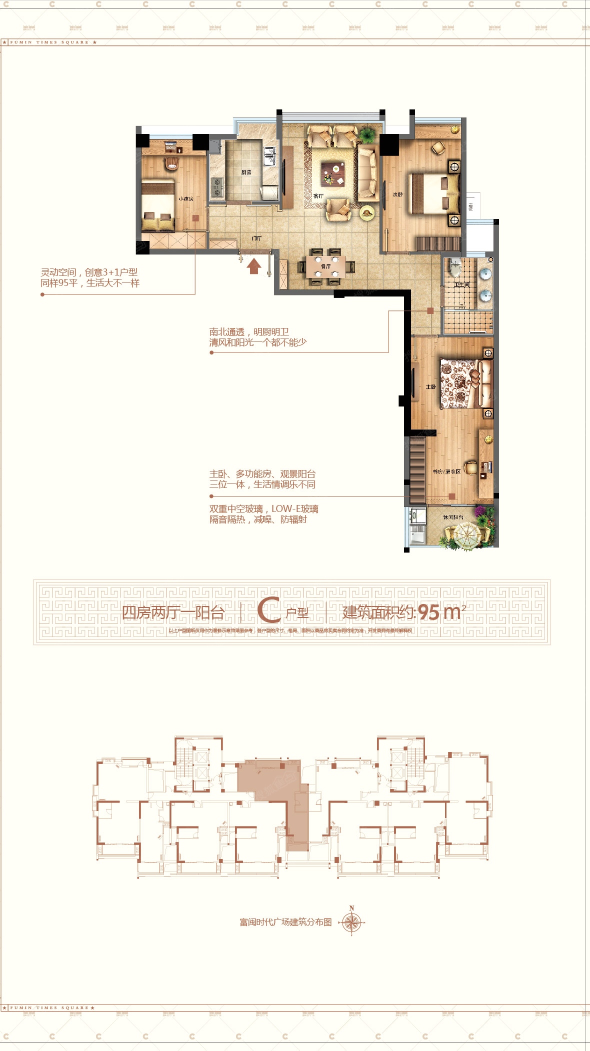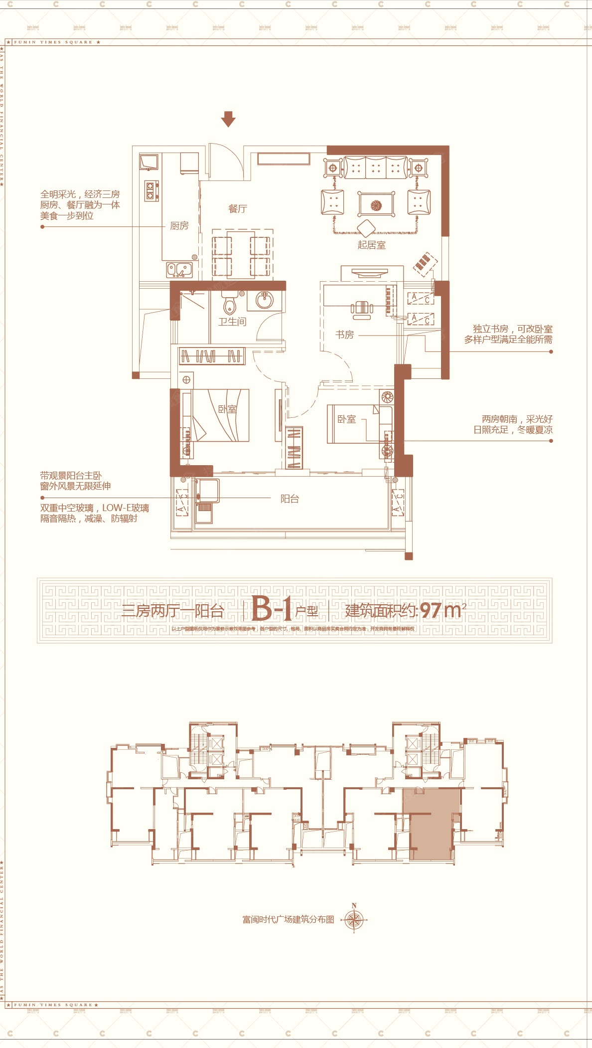 富闽时代广场位于台江区鳌峰路与曙光路交叉路口,台江万达正对面,原为福州花鸟市场地块。该项目地处金融街核心地段,连接金融街一期二期中轴线,坐享金融街一期繁华与成熟配套,而随着金融街二期建设发展,升值空间不言而喻。该项目为福州又一城市综合体,以智慧引领未来,致力打造福州较具前瞻性的智能化综合体。项目规划高端住宅、5A写字楼及时尚购物街区,一期推出53-123㎡高端住宅,共计32层,140平方米豪华酒店大堂,尊享尊贵;全明户型、通透设计,超高空间利用率;顶层私享花园,打造独有的私密空间。