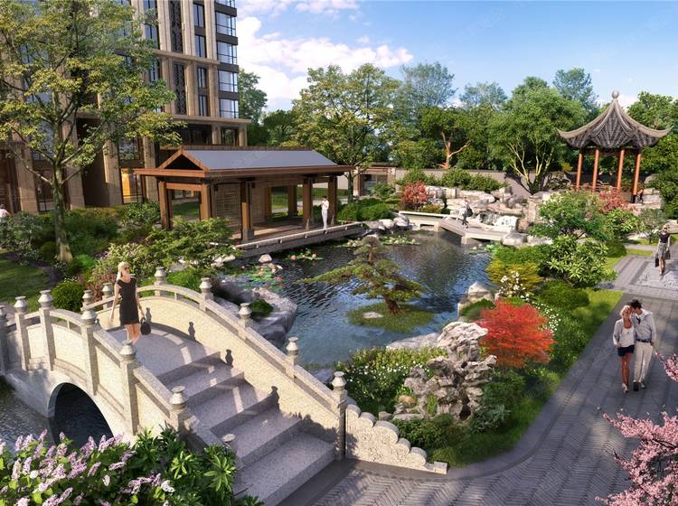 法相江南园林,取义诗词歌赋,多进式中轴线园林打造至尊入户体验;