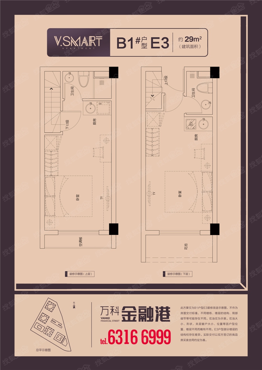 项目为5米层高双钥匙LOFT产品,不限购不限贷,买一层可用两层,面积适中,利用率高,自住、投资皆宜。目前,项目即将6#和B1#,建筑面积为约29㎡-32㎡。
