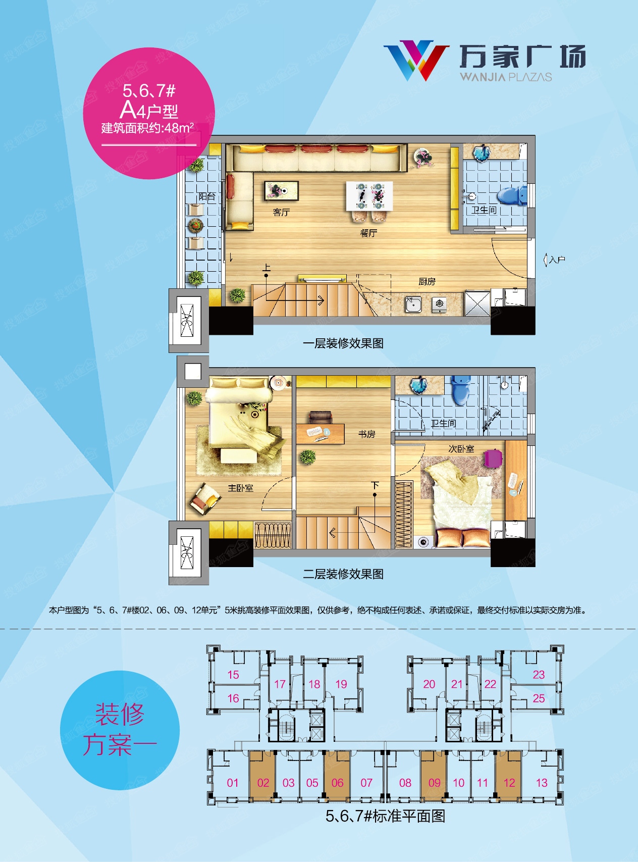 2室2厅2卫-5、6、7# A4户型 约48㎡ 方案一