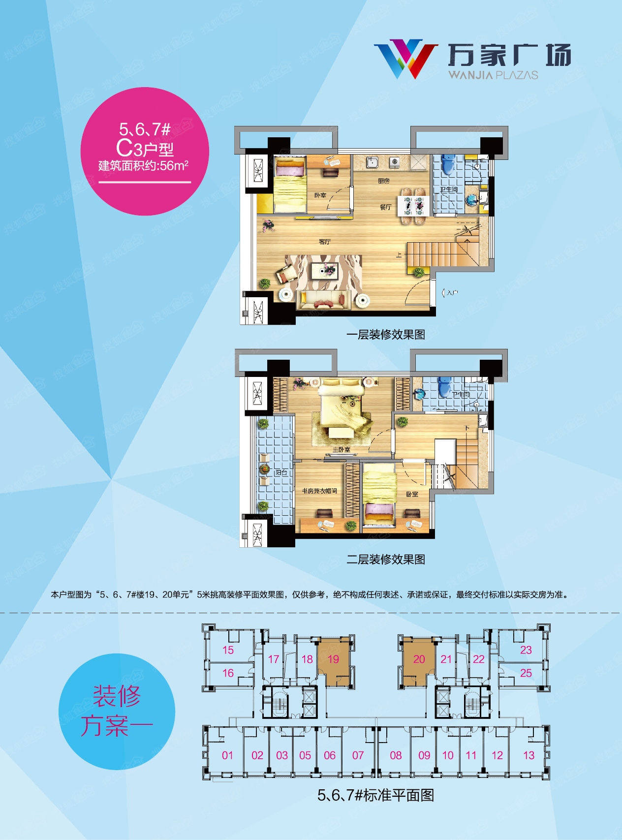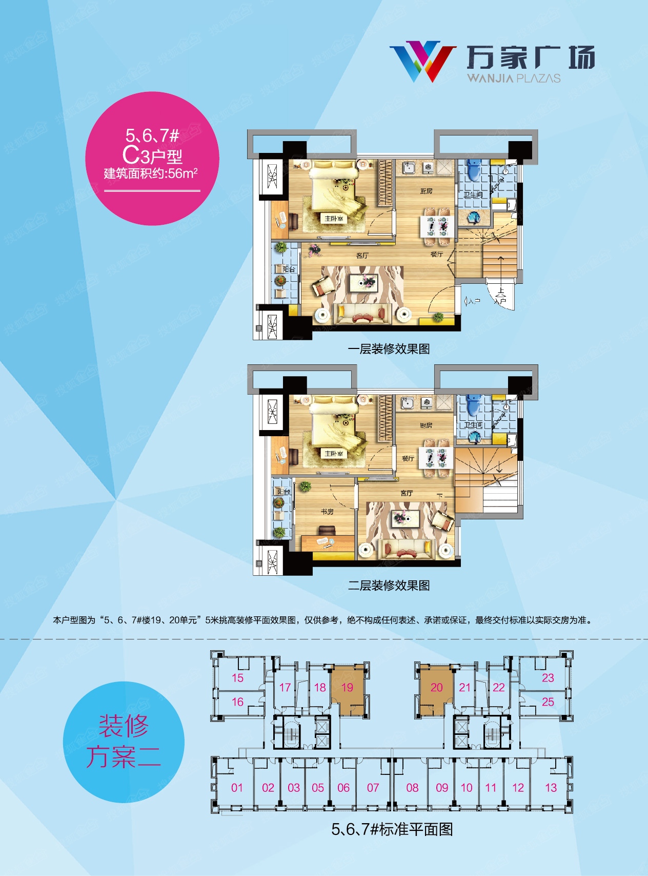 3室2厅2卫-5、6、7# C3户型 约56㎡ 方案二