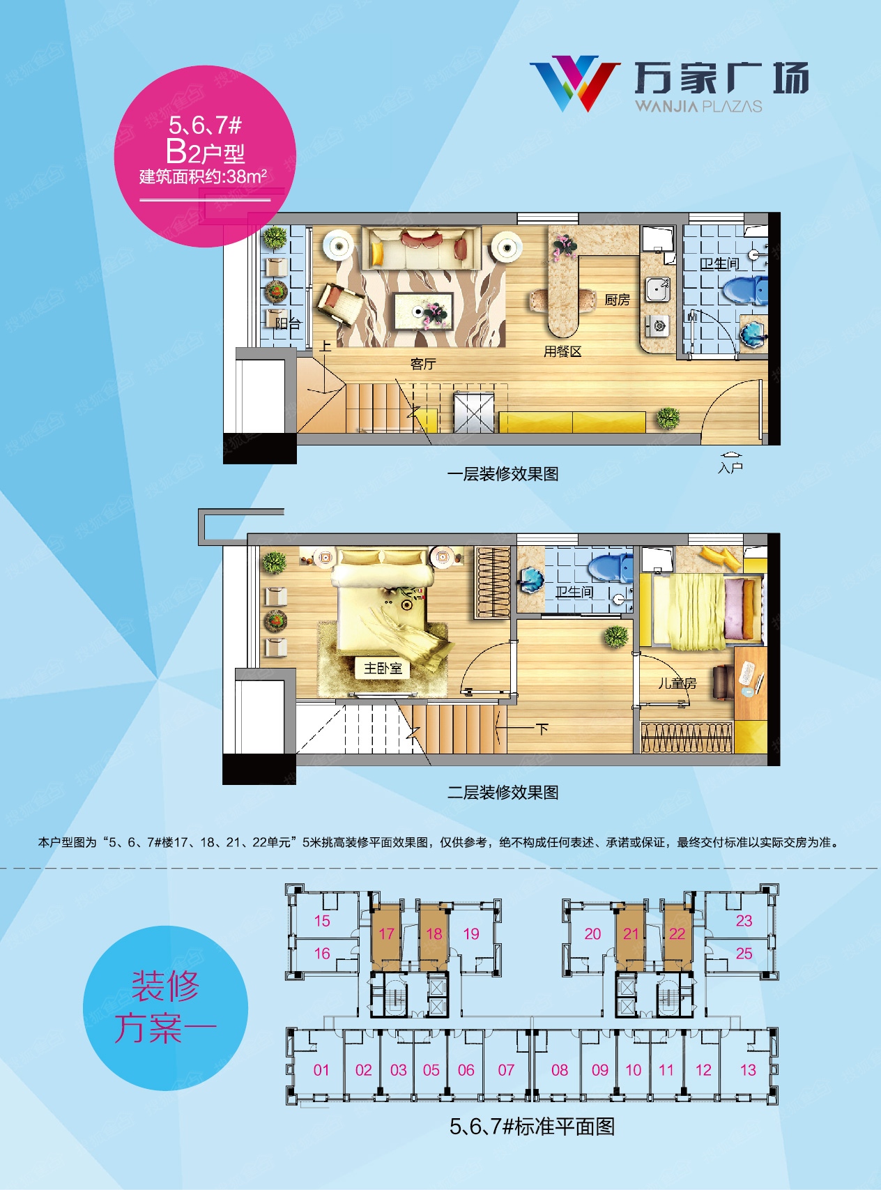 万家广场傲踞老城区,毗邻5号地铁线,多条公交线路经过;毗外部邻2500亩生态湿地公园,更纵揽一线江景,健康生活举步即达;内部豪华大堂配置,另赠空中花园,品牌电梯,国际化物管服务,全方位配置;5米挑高,两层使用空间,百变生活随时享受!