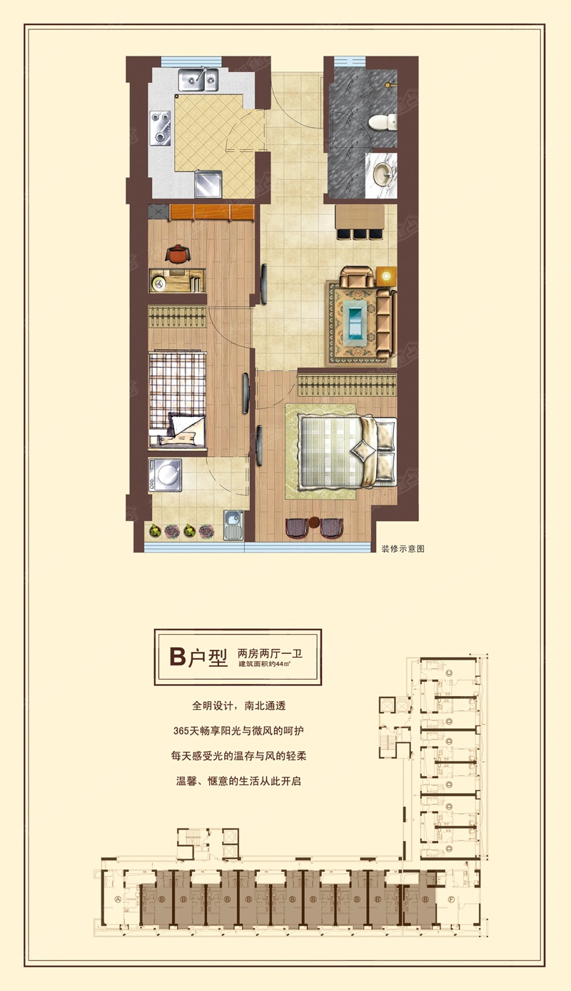 2室2厅1卫-B-44㎡