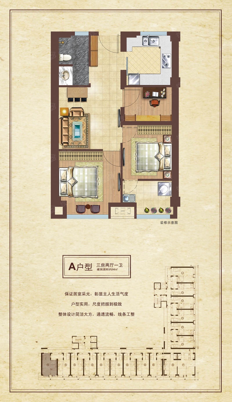 3室2厅1卫-A-56㎡