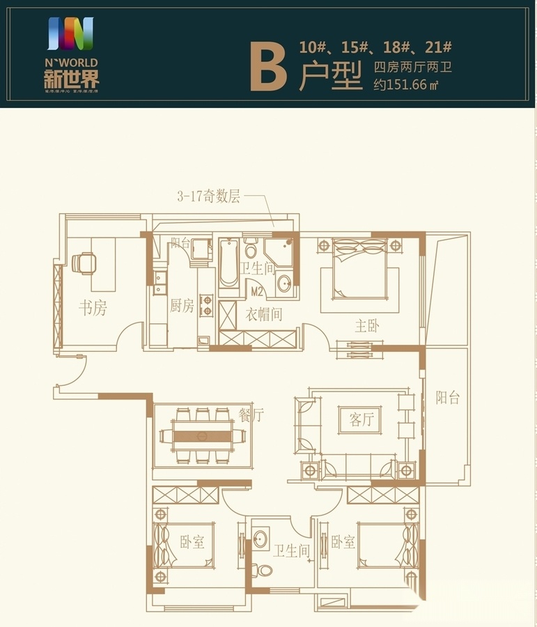 4室2厅2卫-10#15#18#B户型四房两厅两卫约151.66平