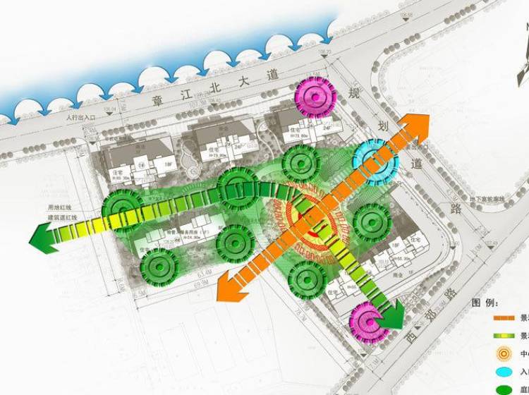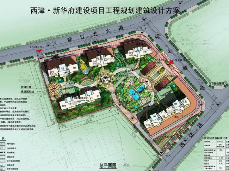 西津·新华府建设项目工程。总占地14535㎡,项目位于赣州市章贡区,北临章江北大道、南至西郊路、滨江四期以西、赣州市冶金研究所以东。周边交通发达,配套设施齐全。整个小区规划设计充分配合基地形状,结合当地对朝向、通风的客观要求,采用了组团式布局,融入沿海城市设计中广泛使用的大花园的概念,通过单体建筑重新组合,将有限的用地充分整合为大规模的集中式园林绿化。这种格局充分保证居住环境安逸祥和的品质与理想的安全防卫性,营造出悠闲舒适的居住氛围。我们在设计中从全方位着眼考虑设计空间与自然空间的融合,不仅仅关注于平面的构图及功能分区,还注重于全方位的立体层次分布。