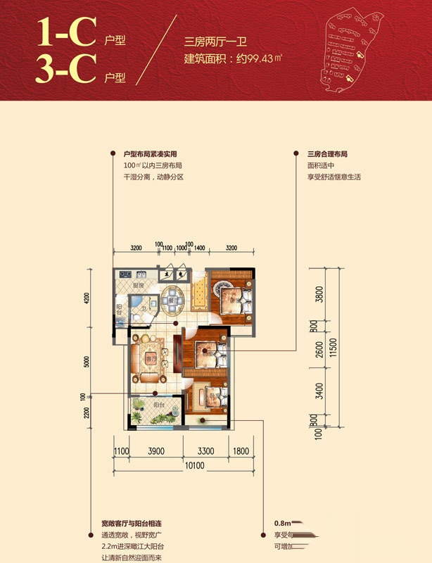 3室2厅1卫-1#C,3#C户型