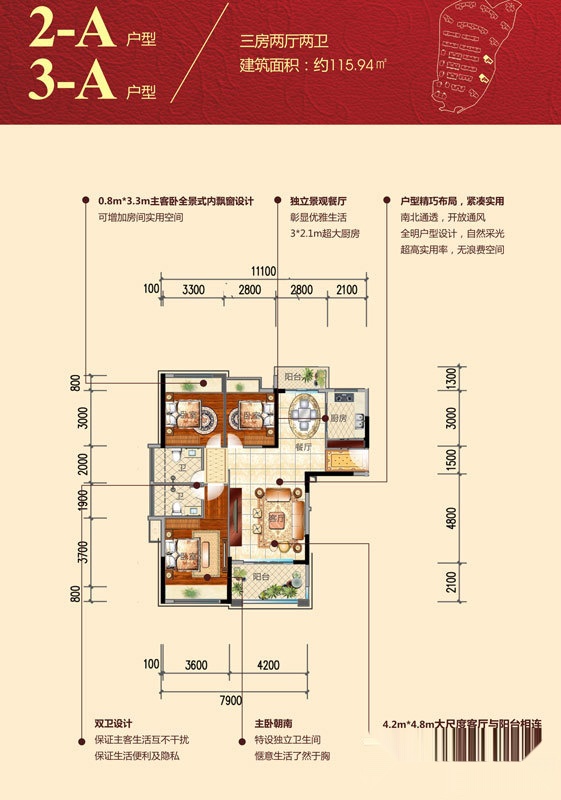 3室2厅2卫-2#A,3#A户型
