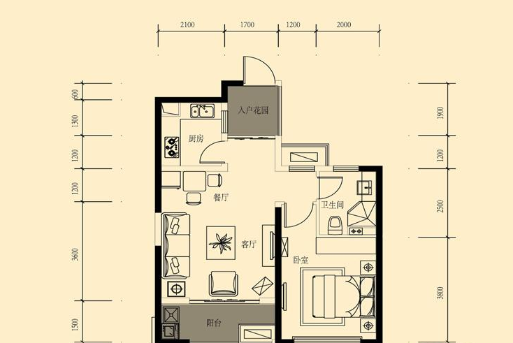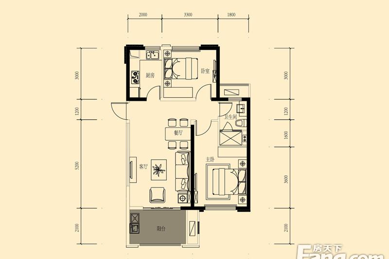 1室2厅1卫-三期8#J户型