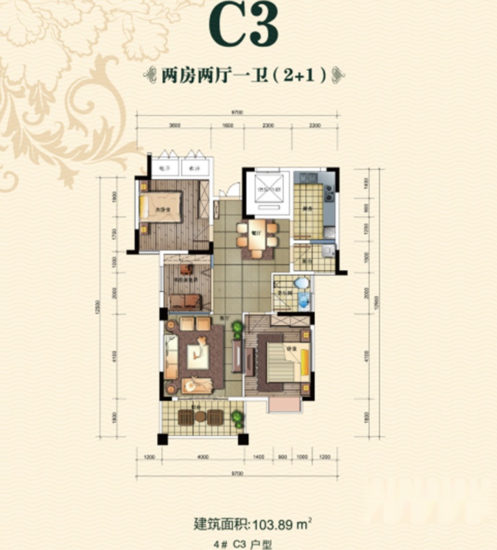 2室2厅1卫-1#2#3#通用楼层E3户型1