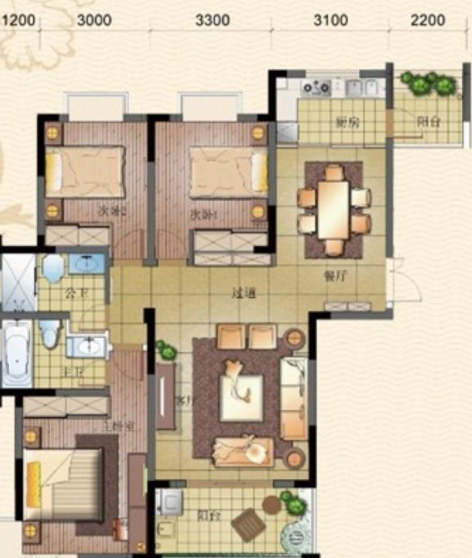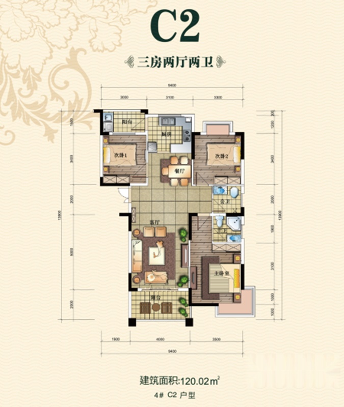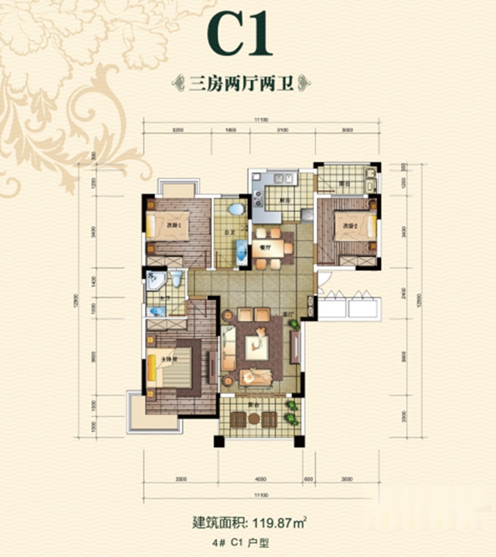 3室2厅2卫-1#2#3#通用楼层E1E2户型