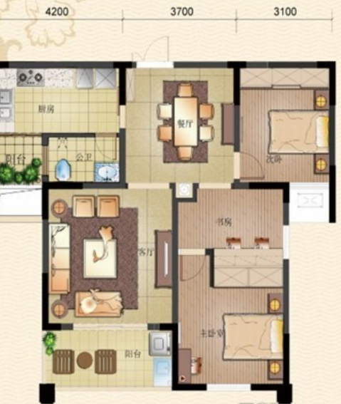 3室2厅1卫-5#6#7#通用楼层E3户型2