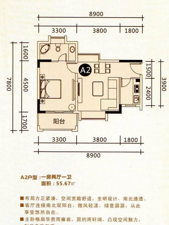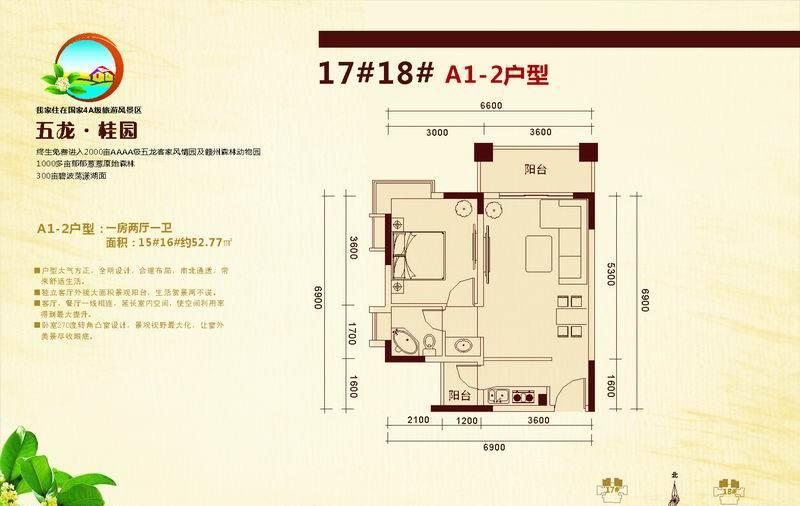 1室2厅1卫-五龙桂园17#18# a1-2户型