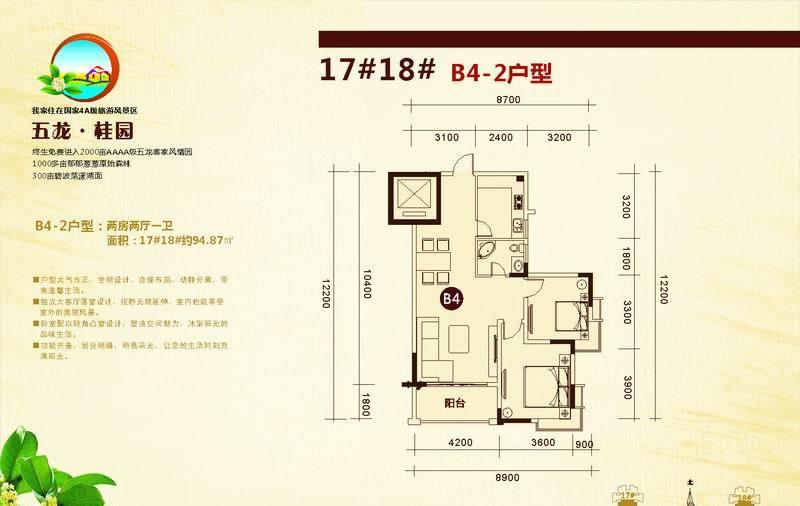 2室2厅1卫-五龙桂园17#18#b4-2户型