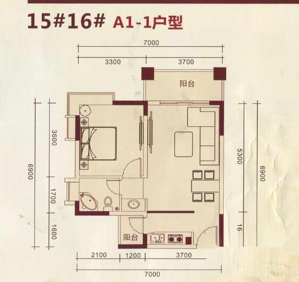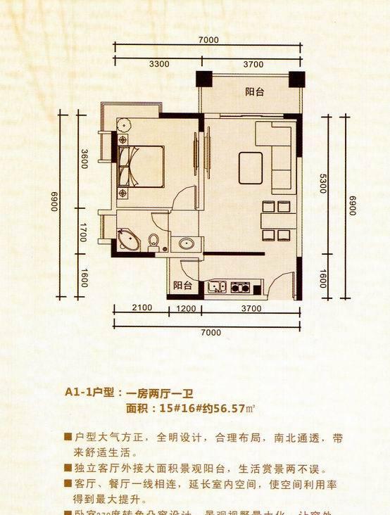 1室2厅1卫-五龙桂园15#16# a1-1户型