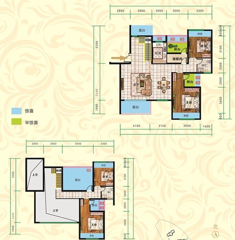 4室2厅2卫-F1户型 空中别墅 约155.4平米