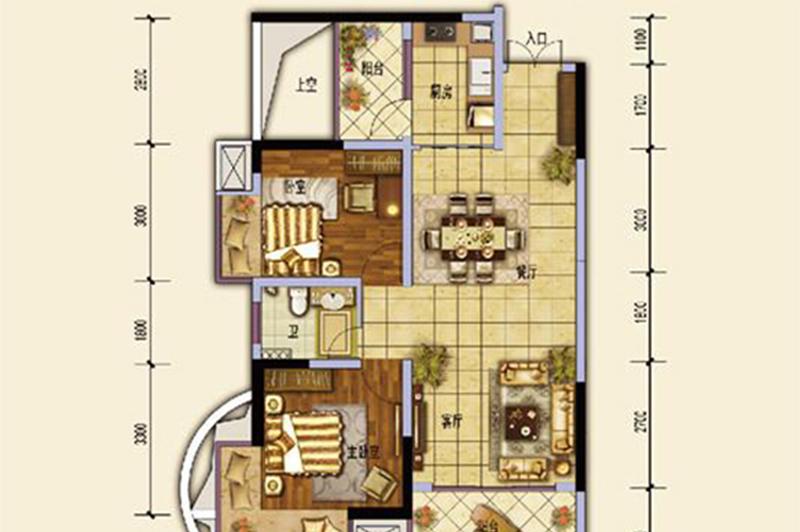 2室2厅1卫-1期15#-B-1户型