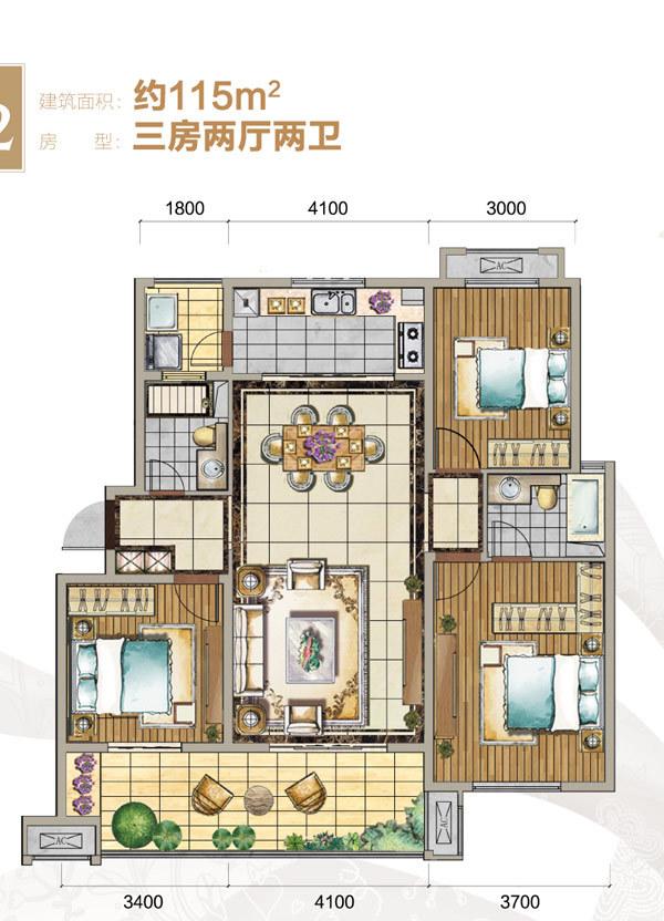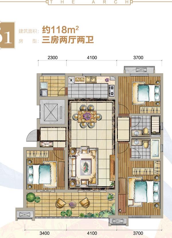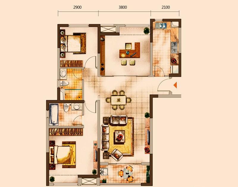 3室2厅2卫-凯旋门6#7#楼B2户型