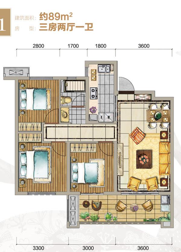 3室2厅1卫-凯旋门2#3#5#楼A1户型