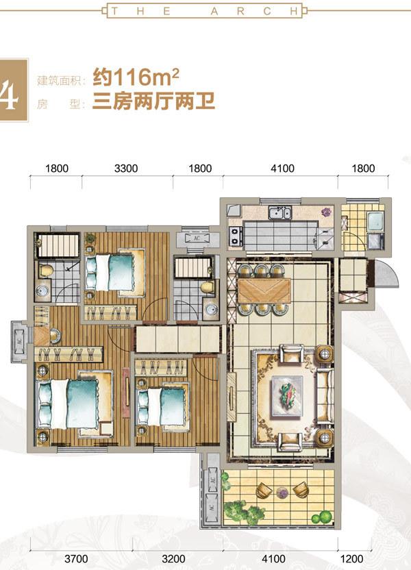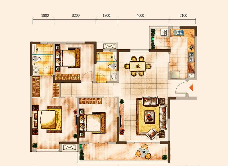 3室2厅2卫-凯旋门2#5#楼A4户型