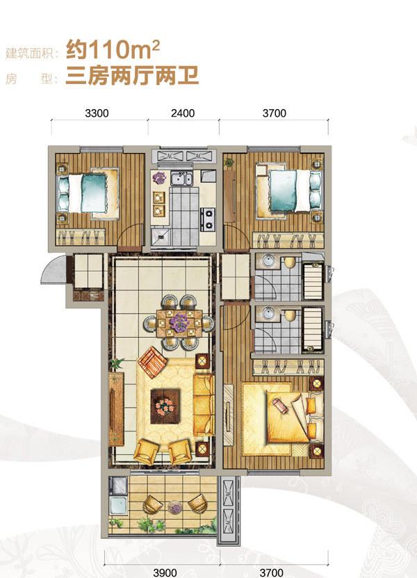 3室2厅2卫-中海派1#-6#、8#-9#楼户型