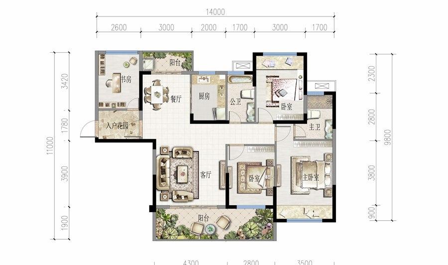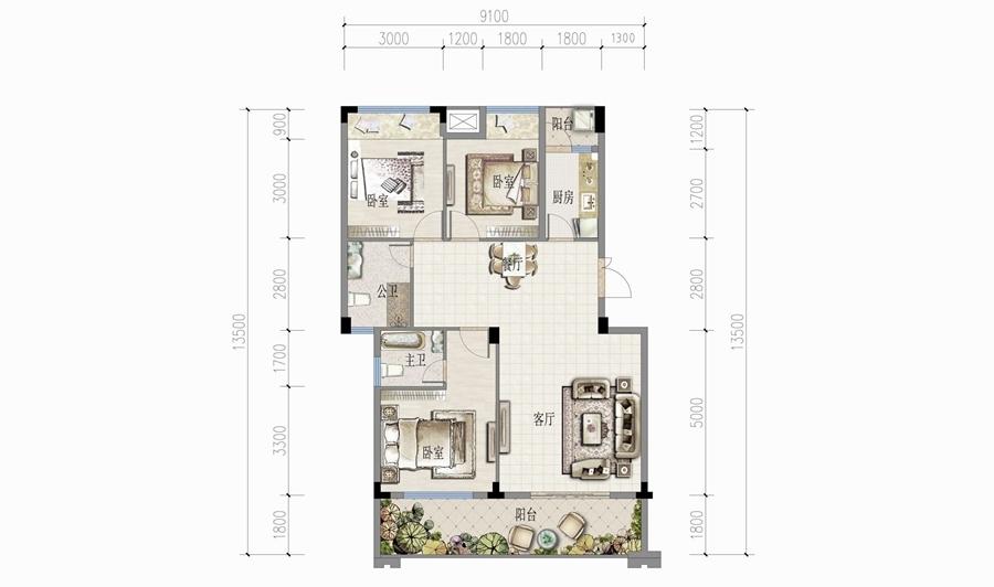 待售 露台 南北通透 厨卫不对门 户型方正 客厅朝南 主卧朝南 全明格局 干湿分离 餐客分离